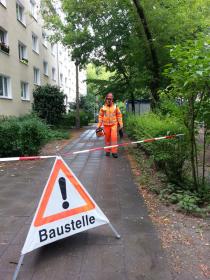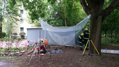 Im Rahmen unseres regelmäßigen Bereitschaftsdienstes mit der Berliner Feuerwehr erhielten wir am 20.6.2015 den Auftrag, eine “kleine Technische Hilfeleistung” im Stadtteil Friedrichsfelde durchzuführen. Diese offenbarte sich den Helferinnen und Helfern bei deren Eintreffen als eine etwa 35 Meter hohe Linde, von welcher ein Ast ähnlicher Länge und einem Durchmesser von mehr als einem Meter abgeknickt war. Dieser war quer über einen Bach gefallen, hatte sich in mehreren Baumkronen verfangen und drohte auf den Fußgängerweg zu stürzen.