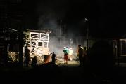 Hier erwartete die Gruppe zunächst eine unübersichtlich wirkende Schadenslage mit mehreren in Trümmern liegenden Objekten, die teilweise in Brand geraten waren und Zivilisten, die versuchten zu ihren Angehörigen zu kommen, die verschüttet wurden.