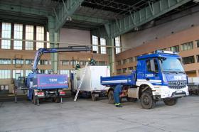 Mitte auf die bereit gestellten Tieflader der Fachgruppe Räumen aus Berlin Tempelhof-Schöneberg und