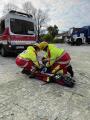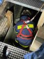 Die letzten Helfer waren noch beim Essen und schon kam der nächste Alarm für alle Einheiten. Es hieß „Einsatzbereitschaft wieder herstellen und an den Fahrzeugen sammeln“. Aufgaben für die Kombistationen zwei und drei waren: „Rettung aus der Tiefe und Arbeitsunfall auf einem Schwerlastregal“. Die besondere Schwierigkeit für die Schwere Bergungsgruppe ergab sich in der Teilung der Gruppe. Ein Trupp bewältigte das Szenario „ Grubenunglück“ mit Abstützung und Aussteifen und der andere Trupp musste die Rettung des Arbeiters auf dem Schwerlastregal mittels einer sogenannten Schiefe Ebene durchführen. Bei beiden Aufgaben gab es wieder verletzte Personen, welche durch die Rettungshundestaffel und der Spree Ambulance gefunden sowie versorgt werden musste. Bei Einsätzen jeglicher Art mit Beteiligung von verletzten Personen kann es immer mal wieder passieren, dass aufgrund der Zeit bis zum Vordringen zum Patienten, sich der Mensch in einem kritischen Zustand bis hin zur Wiederbelebung befinden könnte . Das mussten auch die Helfer der Fachgruppe Schwere Bergung an diesem Tag erleben. An zwei von drei Stationen führten sie eine Reanimation( Wiederbelegung) gemeinsam mit der Spree Ambulance durch.
